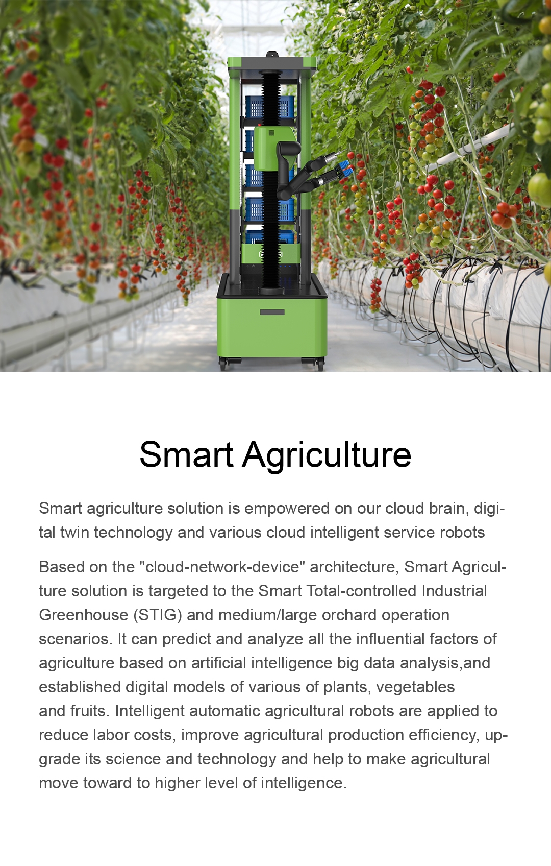 the Smart Total-controlled Industrial Greenhouse (STIG) and medium/large orchard operation