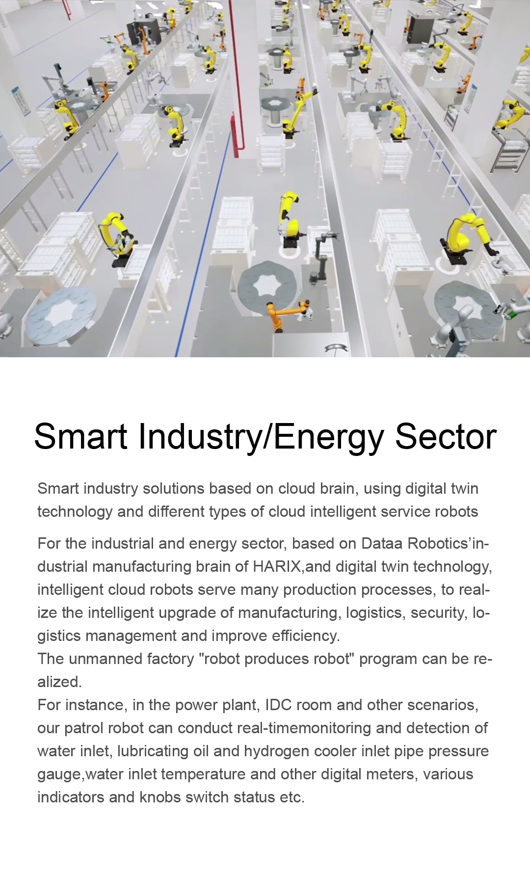 For the industrial and energy sector, based on Dataa Robotics’industrial manufacturing brain of HARIX,